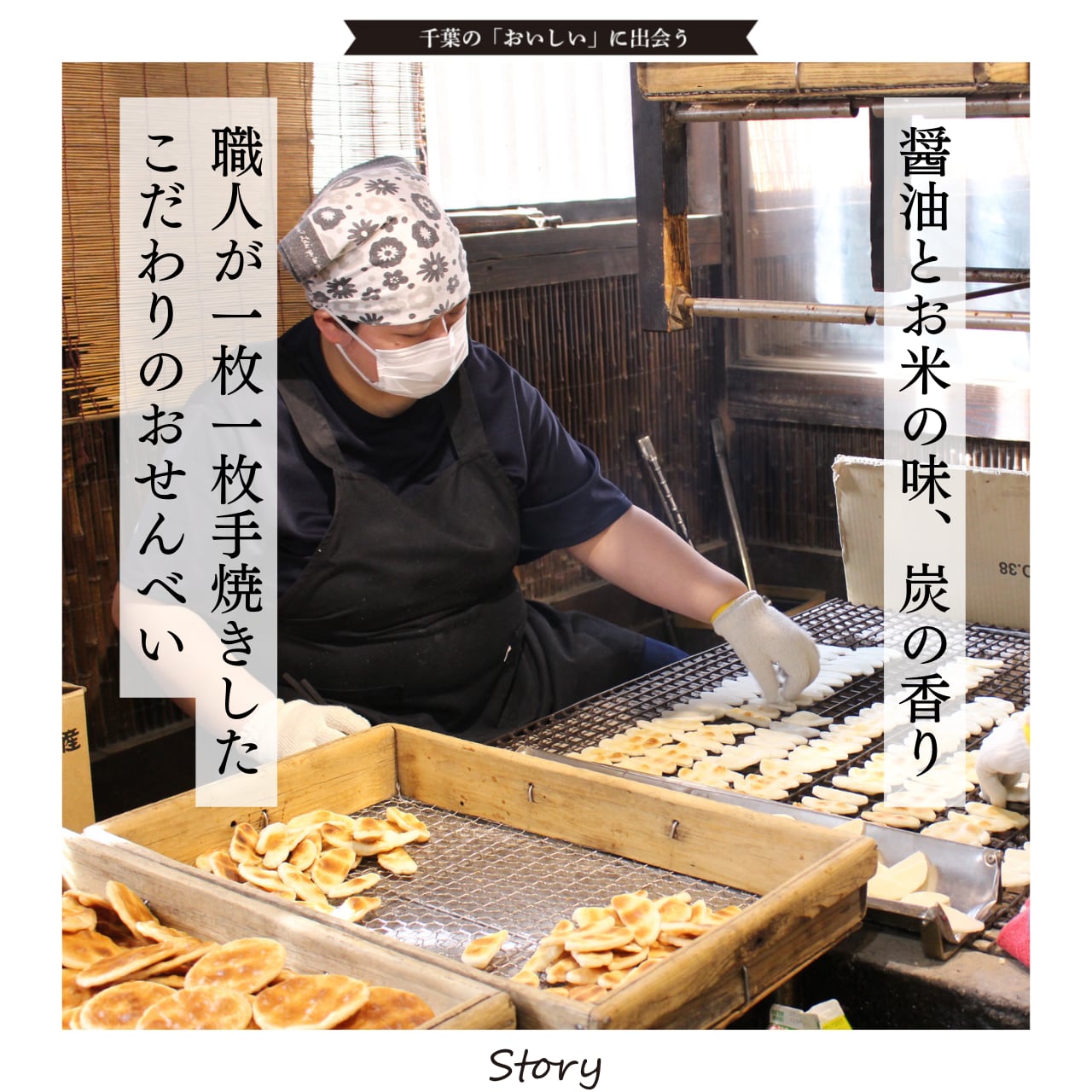 職人が一枚一枚手焼き。こだわりの特選備長炭と地元銚子のしょうゆを使用