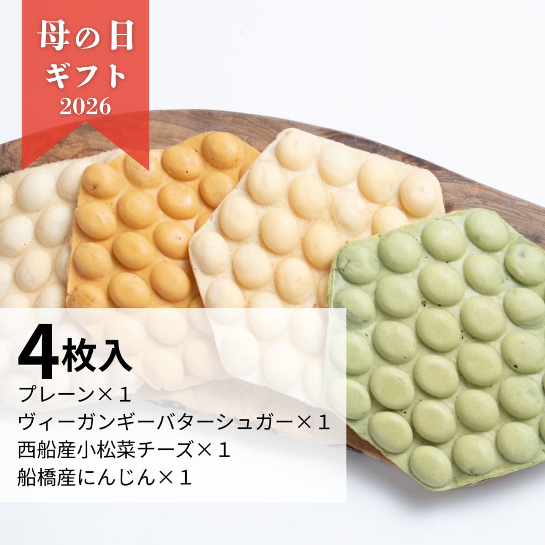 内容量:150g×4枚(プレーン、バターシュガー、にんじん、小松菜)