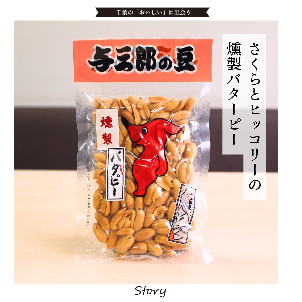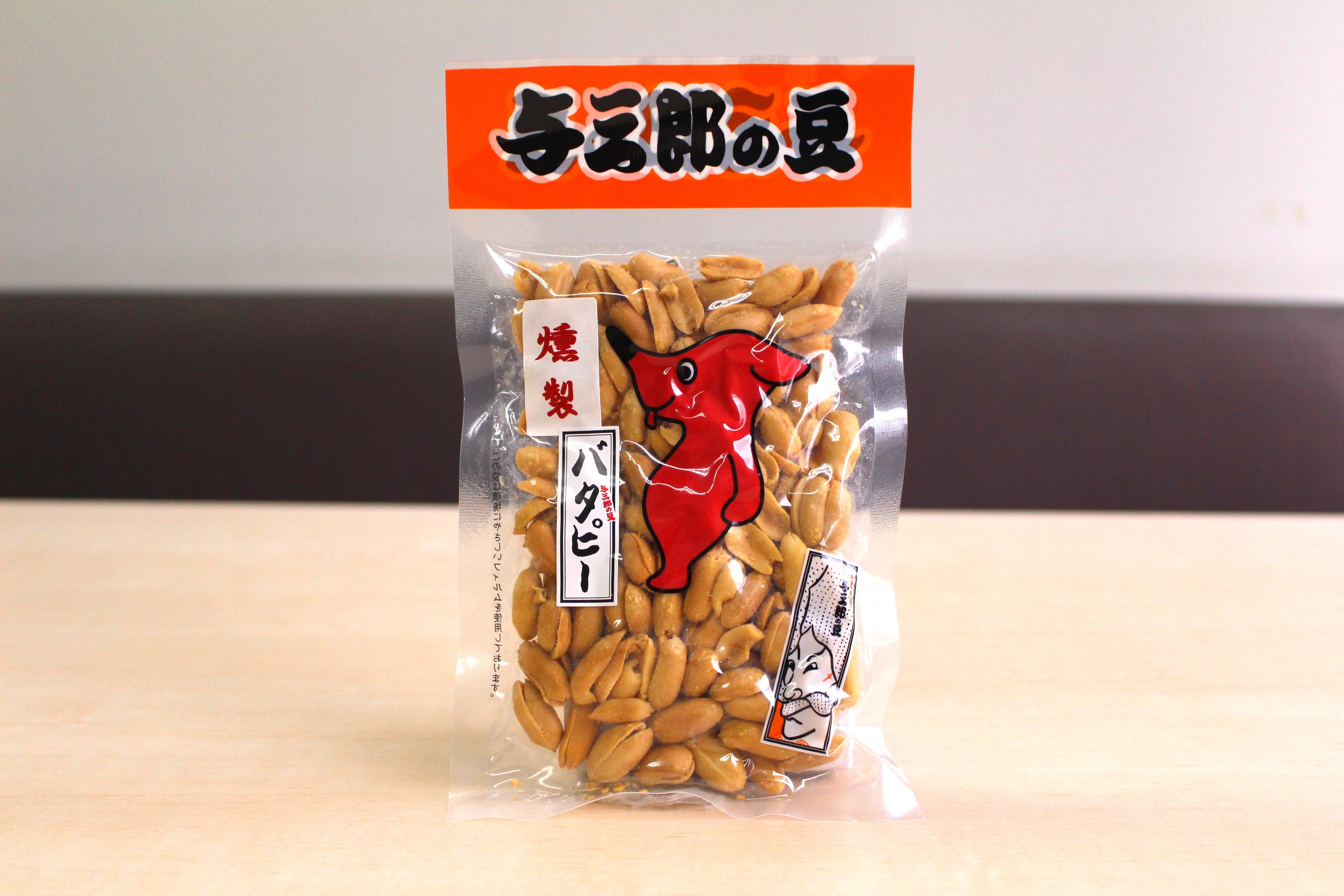 【燻製バターピー】落花生(千葉県産)、米油、植物油脂、食塩、全粉乳/香料(乳由来)、乳化剤(大豆由来)、カロテン色素