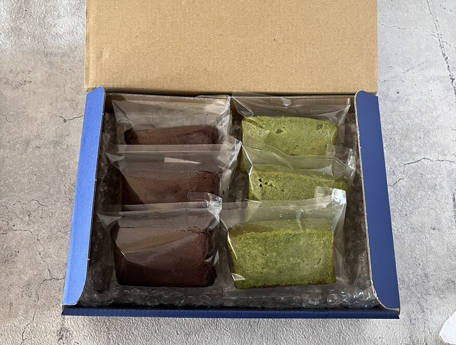 船橋市で採れた新鮮な小松菜を使った「小松菜ケーキ」と、濃厚でなめらかな「リッチカカオ」を詰め合わせた2種のセット。