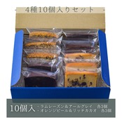 内容量:ラムレーズン×3個、アールグレイ×3個、オレンジピール×2個、リッチカカオ×2個