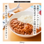 原材料:野菜(ホワイトマッシュルーム、玉ねぎ、人参)(国産)、豚肉、カレールウ、クリーム、はちみつ、マンゴーチャツネ、植物油脂(菜種)、くるみペースト、赤唐辛子/調味料(アミノ酸)、カラメル色素、香料、酸味料、香辛料抽出物 ※一部に小麦・乳成分・くるみ・豚肉・鶏肉・大豆を含む