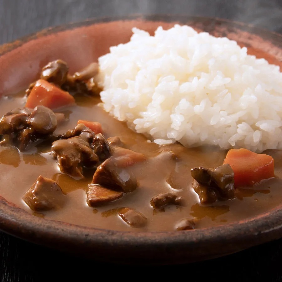 「レトルト猪カレー」は、お子さまも食べられる中辛仕立て。