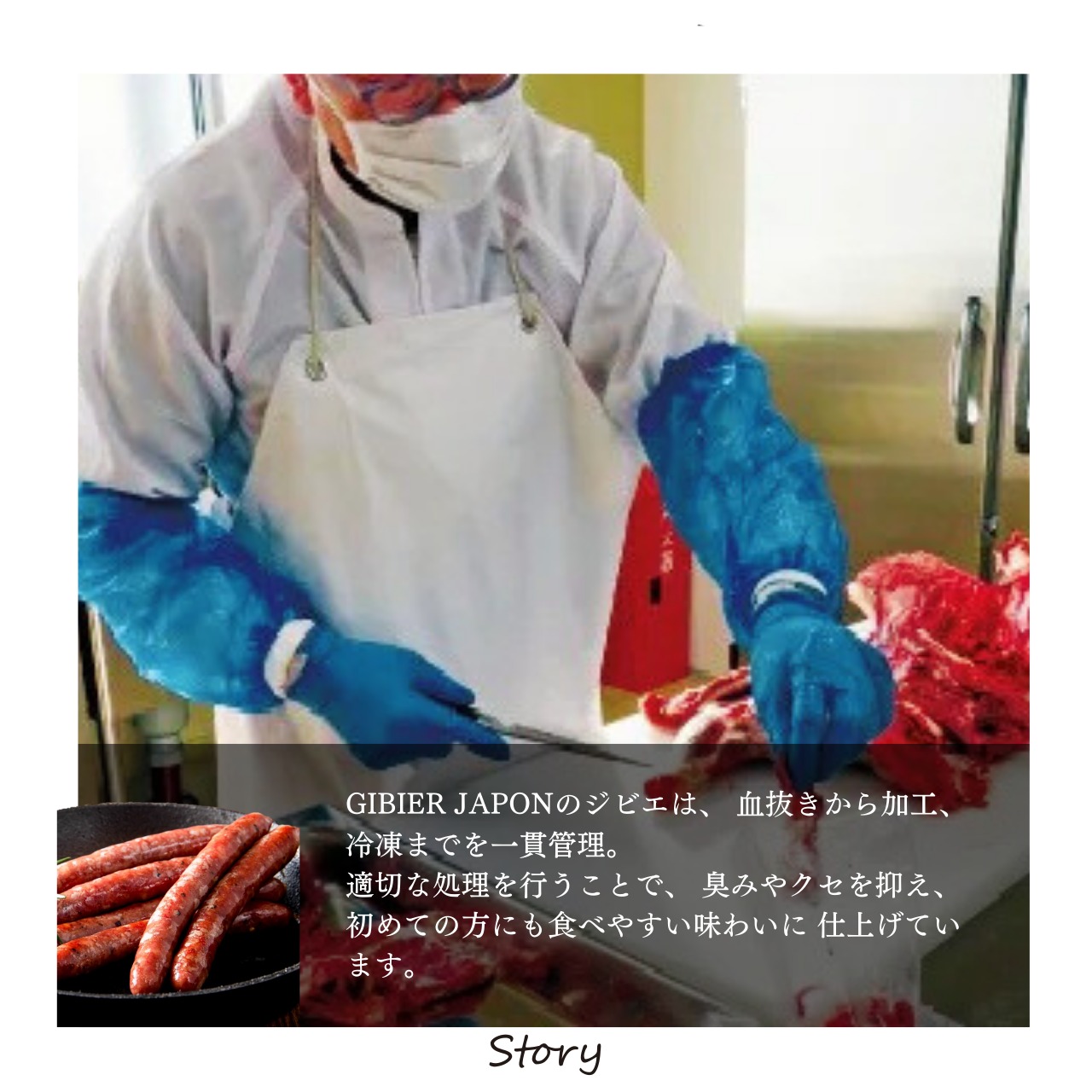 GIBIER JAPONでは、ALSOK千葉の「ジビエ工房茂原」にて、血抜きから加工、冷凍までを一貫管理。
