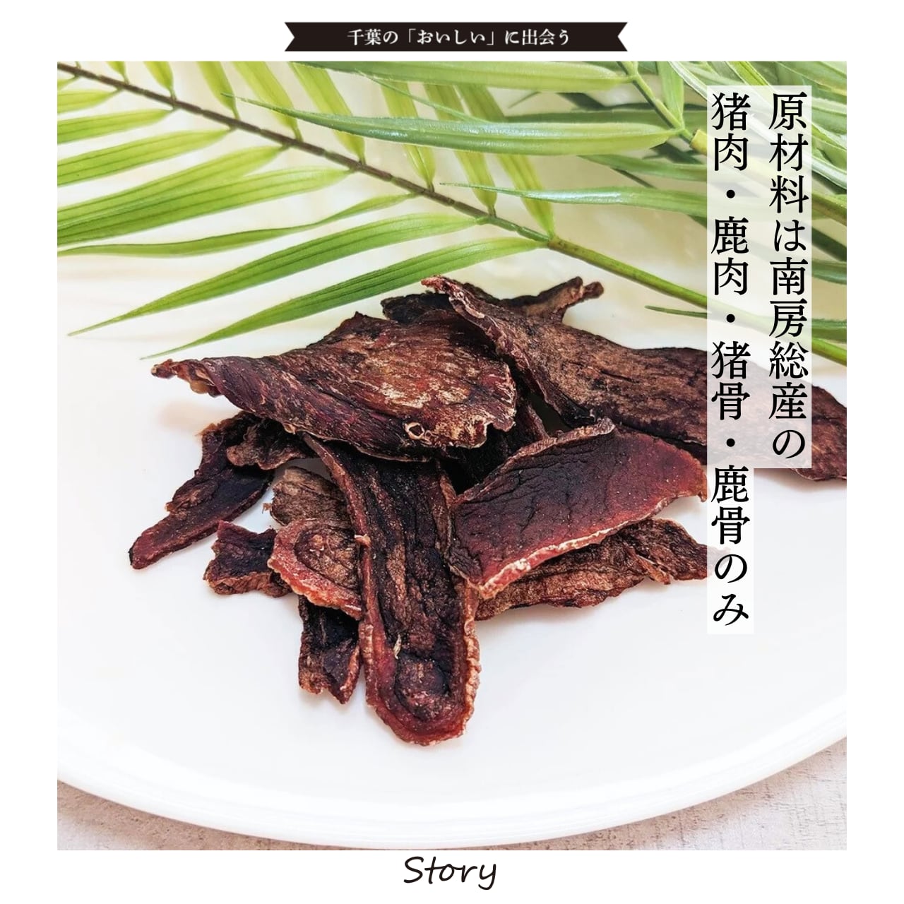 内容量:猪ジャーキー・鹿ジャーキー各50g、猪レトルト・鹿レトルト・猪あばら骨ジャーキー・鹿あばら骨ジャーキー各100g