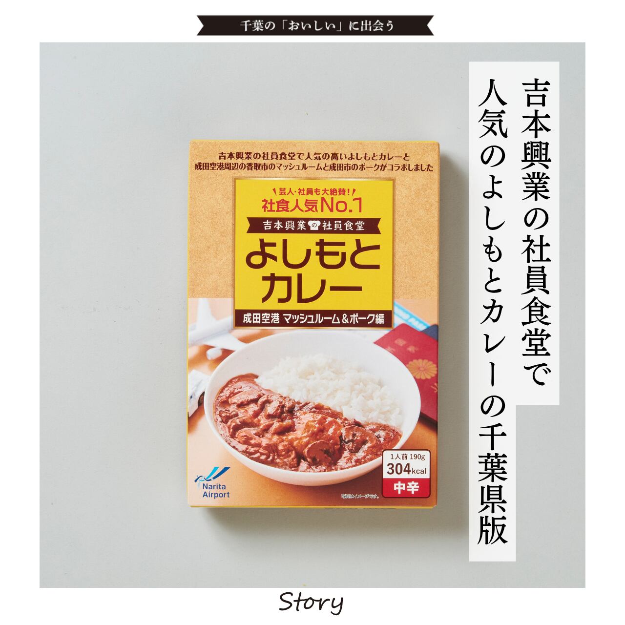 吉本興業の社員食堂で人気の高いよしもとカレーと、成田空港周辺の美味しい食材(香取市の芳源マッシュルーム/成田市の笑顔大吉ポークの豚バラ肉)がコラボしました。