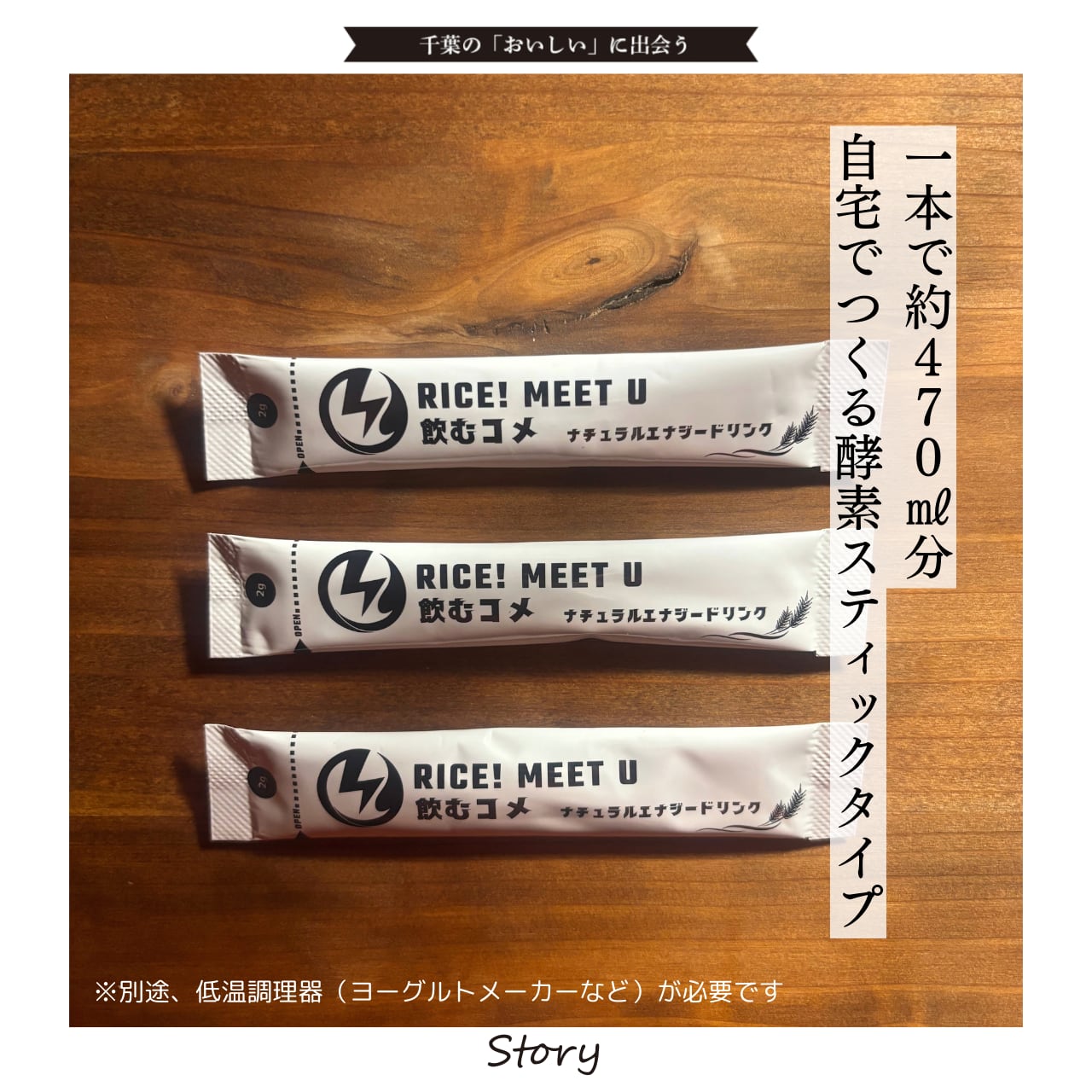 パウチタイプで親しまれてきたRICE!を、家庭で再現できる“おうちキット版”の酵素スティック。低温調理器(ヨーグルトメーカーなど)を使って、RICE!を仕込めます。