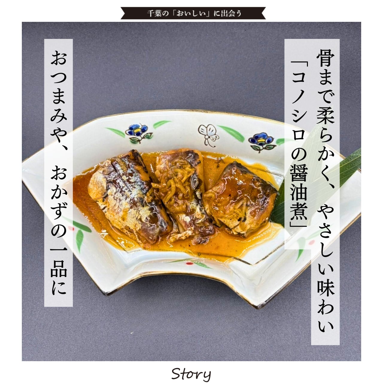 新鮮なコノシロに、骨まで柔らかく仕上がる独自加工を施し、生姜をきかせた醤油味の煮汁で丁寧に煮上げました。