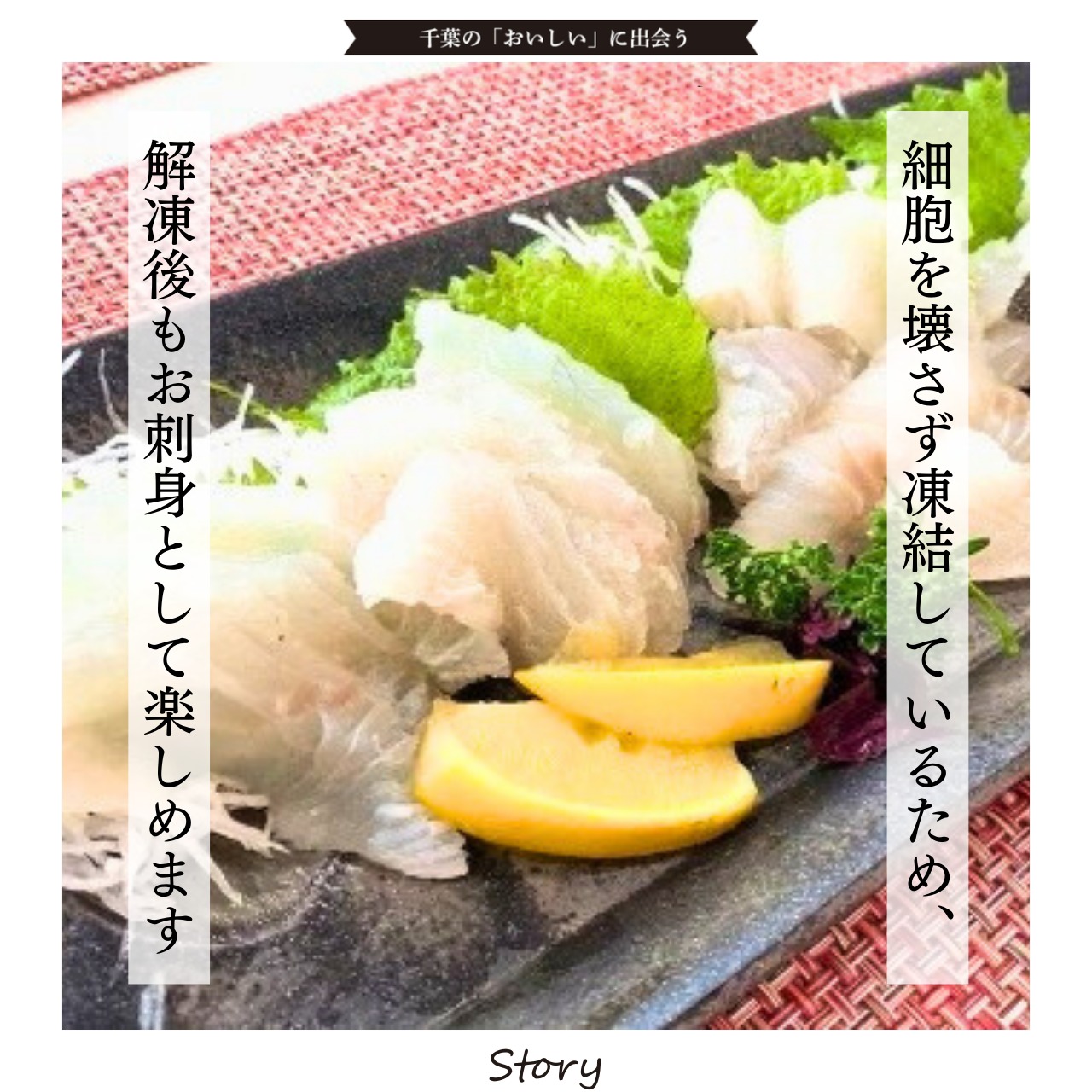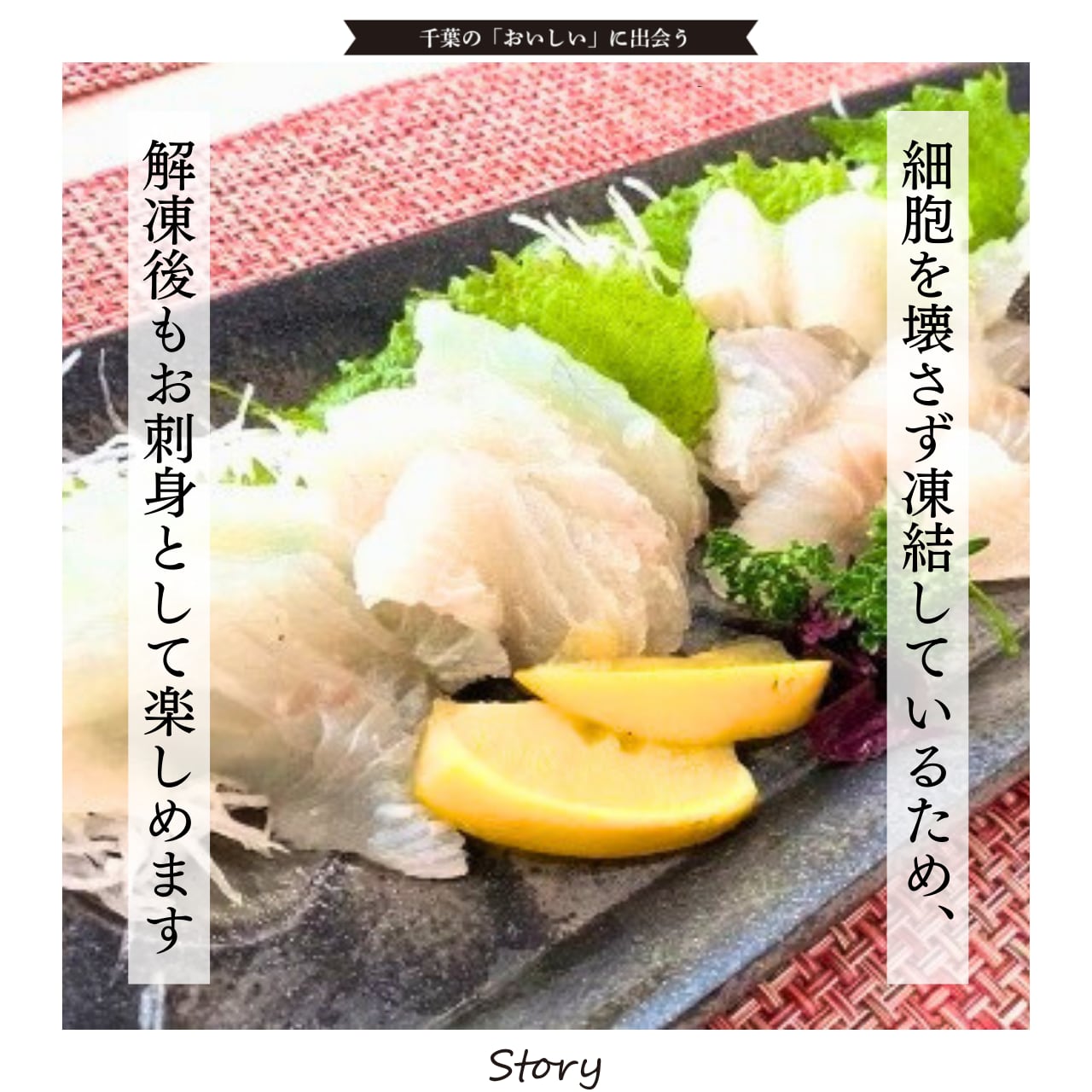 細胞を壊さず凍結しているため、解凍後もお刺身としてお召し上がりいただけます。