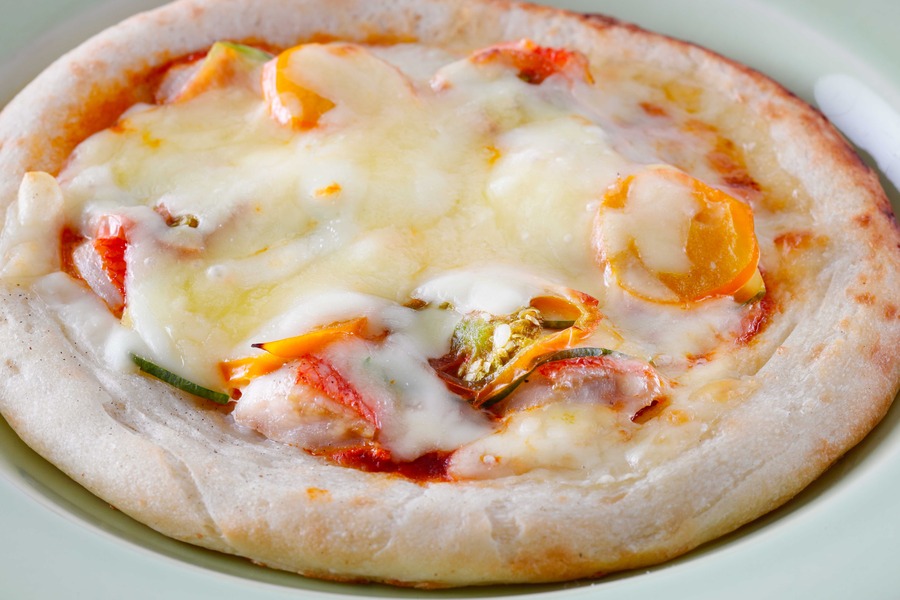 【地金目鯛のピザ(ピザソース)】ピザ生地(国内製造)(小麦粉、食塩、糖類(麦芽糖、ぶどう糖)、イースト、粉末デュラム小麦サワー種)、地金目鯛(千葉県産)、ピザソース(トマト(輸入)、たまねぎ、大豆油、その他)、ナチュラルチーズ、トマト、菜の花/クエン酸、pH調整剤(一部に小麦・大豆・乳成分を含む)
