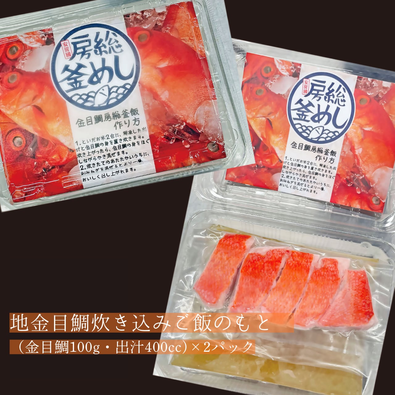 内容量:地金目鯛炊き込みご飯のもと[(金目鯛100g・出汁400cc)×2パック]