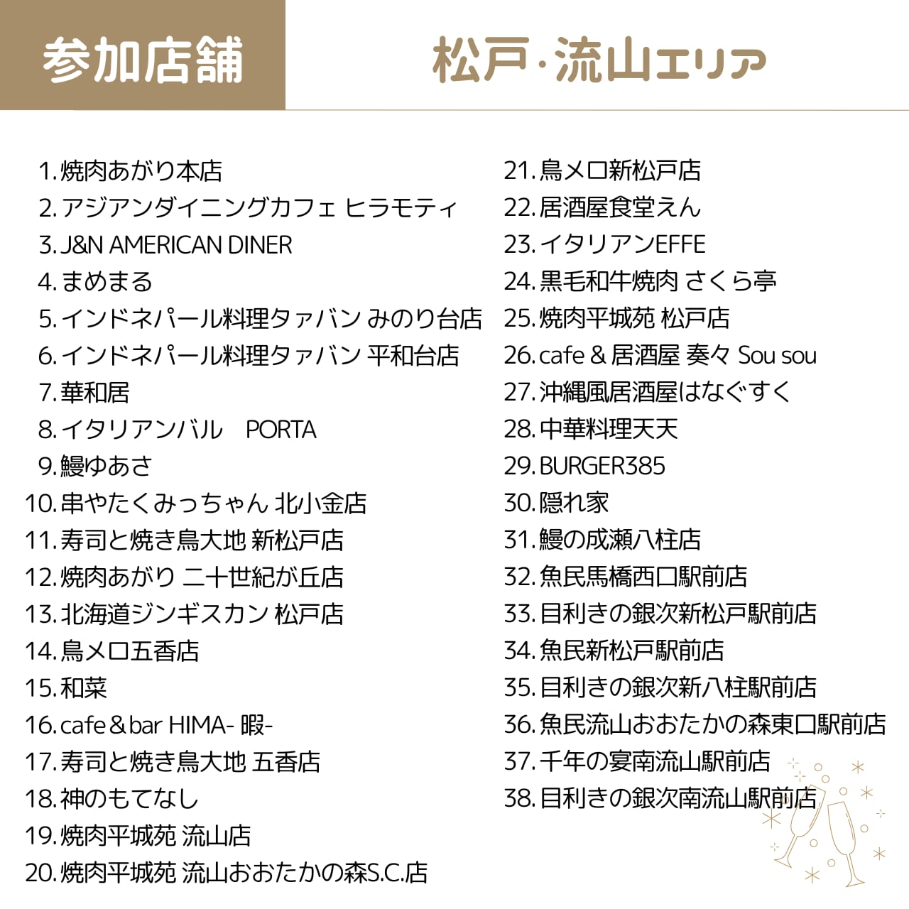 ・期間中に店舗の事情(閉店・休業等)により、掲載店舗での利用ができなくなる場合があります。あらかじめご了承ください