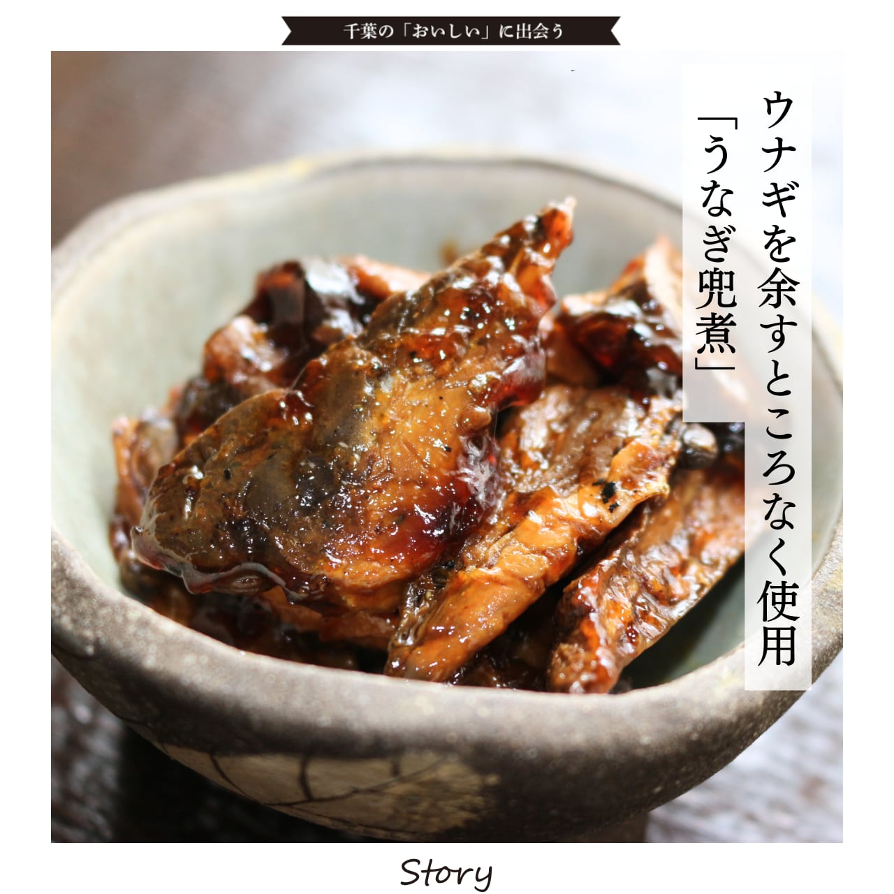 【兜煮】うなぎ頭(国産)、山椒(国産)、醤油、砂糖、みりん、ぶどう糖、水飴、食塩、魚醤/酒精※一部に大豆・小麦を含む
