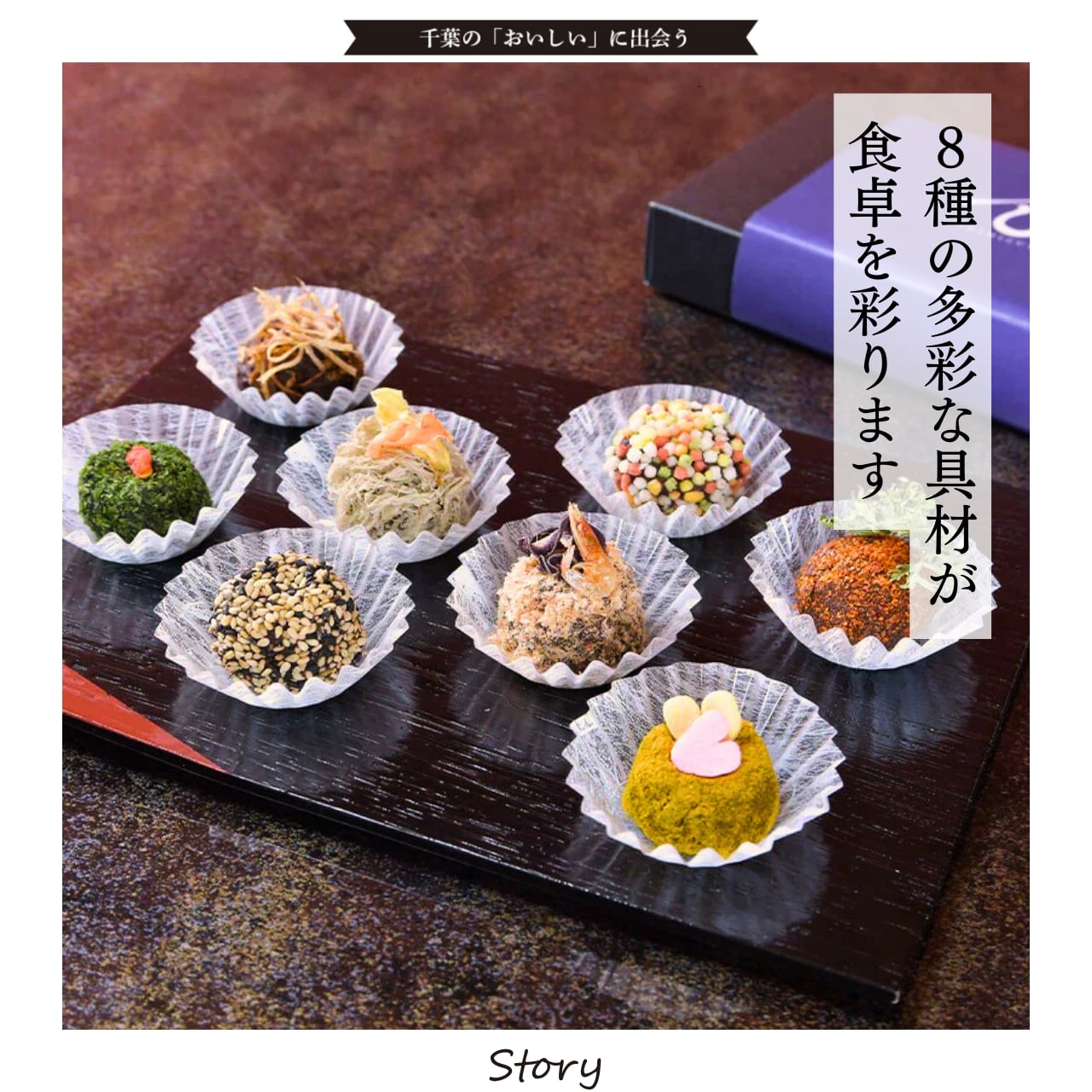 種類は裂きイカ、とろろ昆布、五色あられ、一味唐辛子、青のり、金黒ゴマ、桜エビ、カレーチーズの8種と多彩で、「今日はどれにしようか」と選ぶ楽しみも与えてくれます。